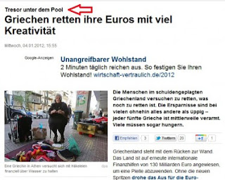Για ακόμα μία φορά το γερμανικό περιοδικό ειρωνεύεται τον Έλληνα! Αυτή τη φορά όμως ξεπέρασε κάθε όριο!Σύμφωνα, λοιπόν, με το εν λόγω περιοδικό, οι Έλληνες βγάζουν τα χρήματά τους από τις τράπεζες και τα κρύβουν όπου μπορούν. «Τα χτίζουν ακόμα και σε …πισίνες», αναφέρει χαρακτηριστικά.